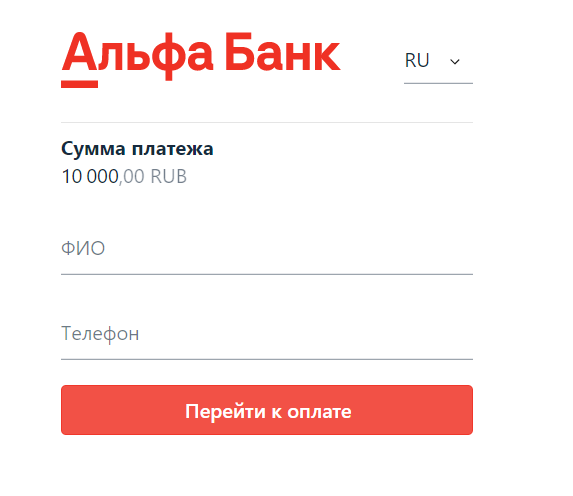 Сумма платежа – поле для суммы платежа, может быть указана с копейками.